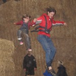 I går var der Åbent Landbrug og vi valgte at besøge Havredalsgaard ved Sall ved Hammel og det fortrød vi bestemt ikke. Vi havde en rigtig dejlig tur. Der var en masse køer, som Ellen dog ikke var så begejstet for, for de kan jo finde på at sige MUH og hun kan altså ikke lide høje lyde. Men kattekillingerne og kalvene var søde. Og så var der en tur gennem majsmarken, hvor man gerne måtte spise af majsen. Og der var små traktorer man kunne køre på og en stor traktor man kunne sidde i og der var en stoooor halmborg, hvor man kunne hoppe ned i halmen og der var en cafe, hvor man kunne få lækre smagsprøver og købe kage og kakao og man kunne komme på traktortur ned i skoven, hvor de både så sika-vildt og agerhøns. Karen tilbragte det meste af tiden på Kåres mave, men synes også at halmen var sjov.