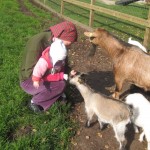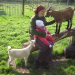 Stakkels Karen – hun sad lige så stille på mit skød og kiggede på gederne. Pludselig stak hun i et skrig – en ged havde åbenbart forvekslet hendes fingre med gulerødder, så den havde lige forsøgt at tage en bid. Hun blev trøstet, men hendes finger var altså ikke så køn bagefter.