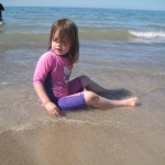 Vi grillede til frokost og tog så en tur til stranden. Det var Karens første rigtige strandtur. Hun synes det var lidt underligt, det der vand. Men den store sandkasse var et hit. 🙂 Ellen var ikke helt med på vandkamp, men nød at sidde i vandkanten og lege.