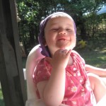 Pinsedag tog vi til Tranum for at fejre pinsen med hele Kåres familie. Det er en lang tur i sådan en varme, men heldigvis faldt Karen i søvn. Det betød så at hun ikke var særlig social, da de store fætre og kusiner kom og ville holde hende. Men heldigvis tøede hun hurtigt op. Ellen og Ann-Kathrine fandt hurtigt sammen og legede godt.